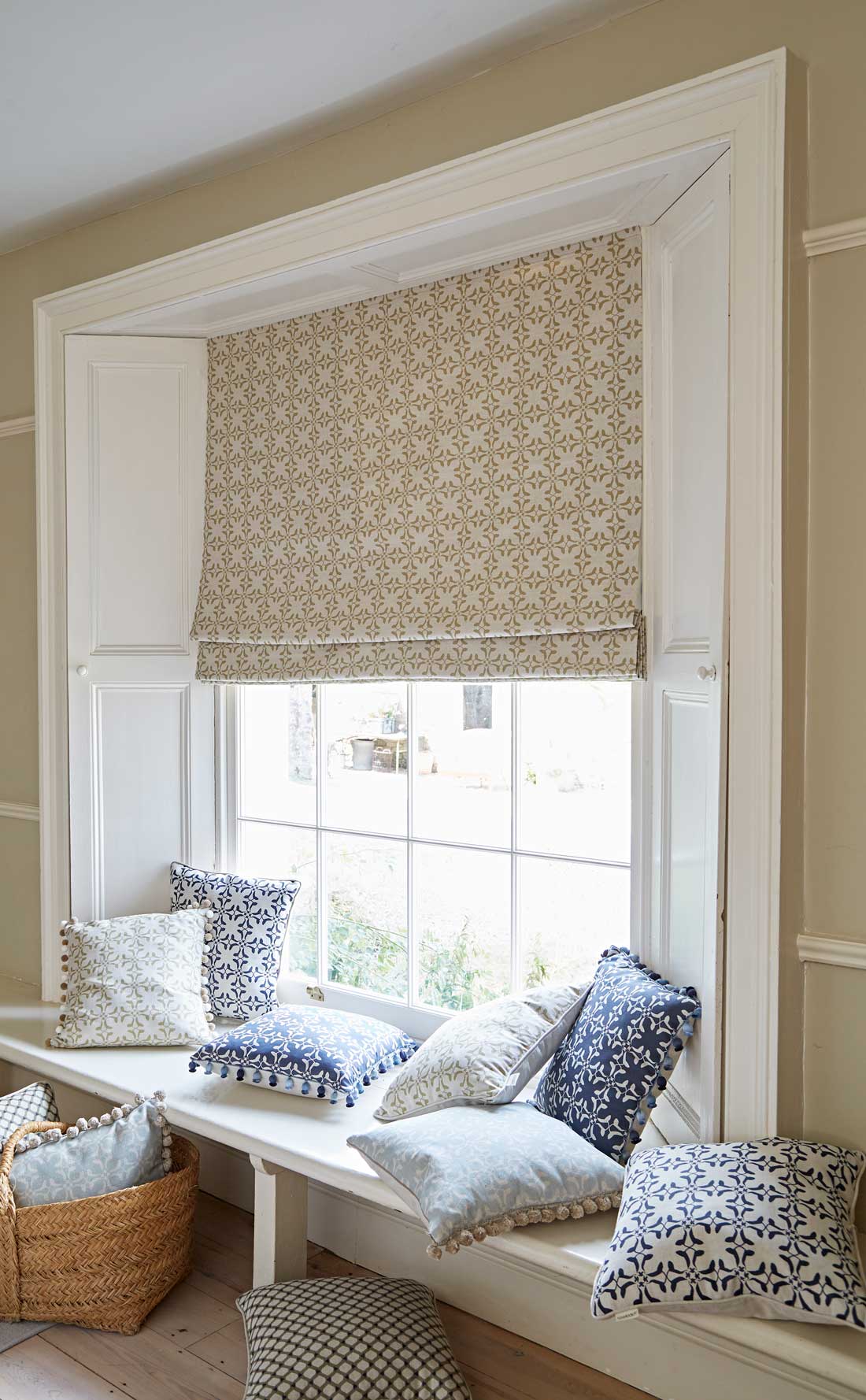 Inspired by an ancient Moroccan tile, our innovative geometric print depicts a scene familiar on any walk in the British Countryside – a field of cows! Traditionally screen printed in England on our textured linen cotton blend.